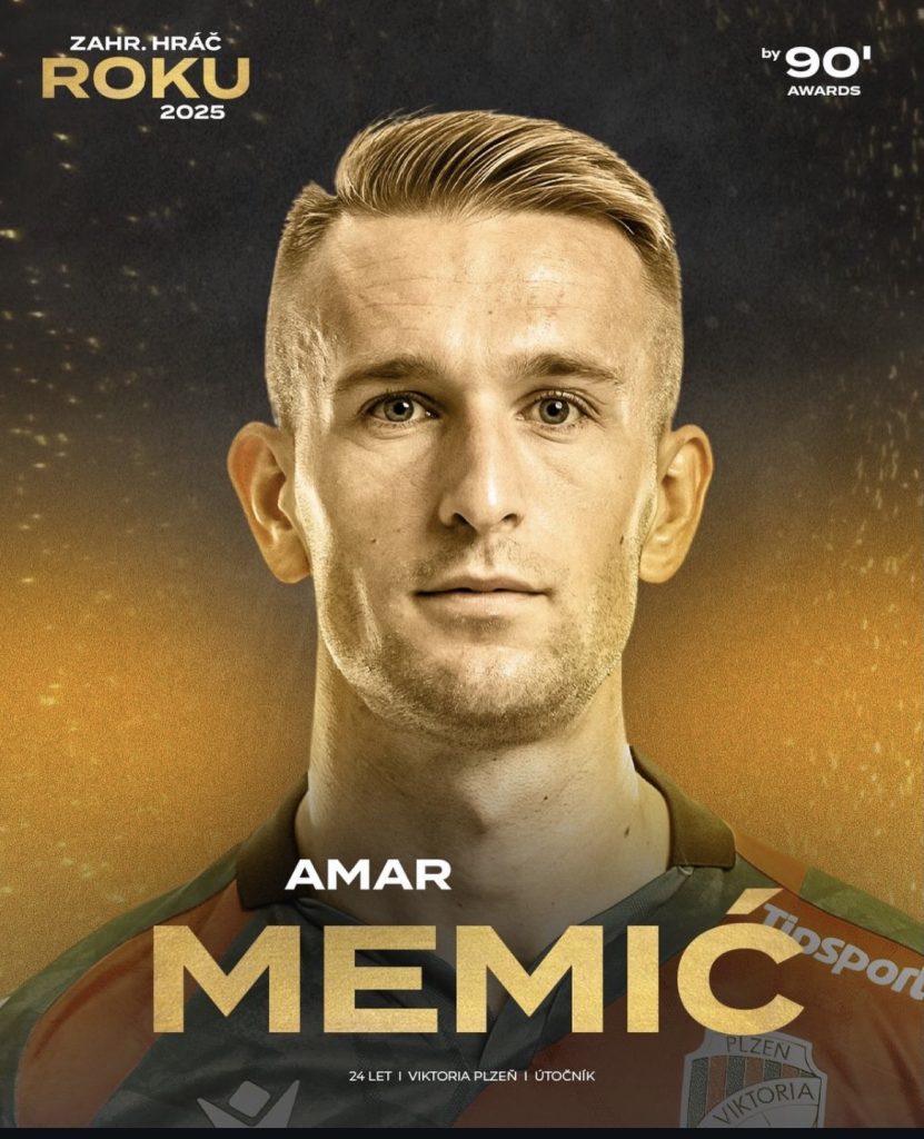 Bosanski fudbaler Amar Memić, napadač Viktorije Plzen, zvanično je proglašen najboljim stranim igračem godine u češkom prvenstvu za 2025. godinu prema izboru renomiranog tamošnjeg medija 90min.cz.