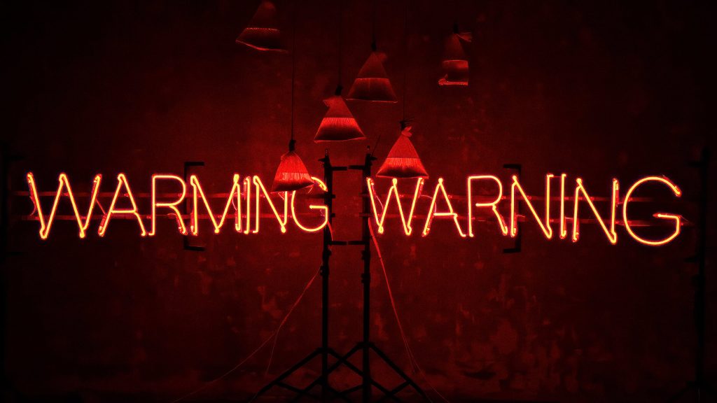 Dominantne tačke u prostoru čine neonski natpisi WAR MING i WAR NING, vizuelna upozorenja koja pulsiraju poput signalnih lampi nad globalnom stvarnošću. „Nije slučajno vrijeme za takvo upozorenje“, zapisao je Samardžić, ukazujući na trenutak u kojem klimatske, socijalne i političke destabilizacije postaju nerazdvojive.